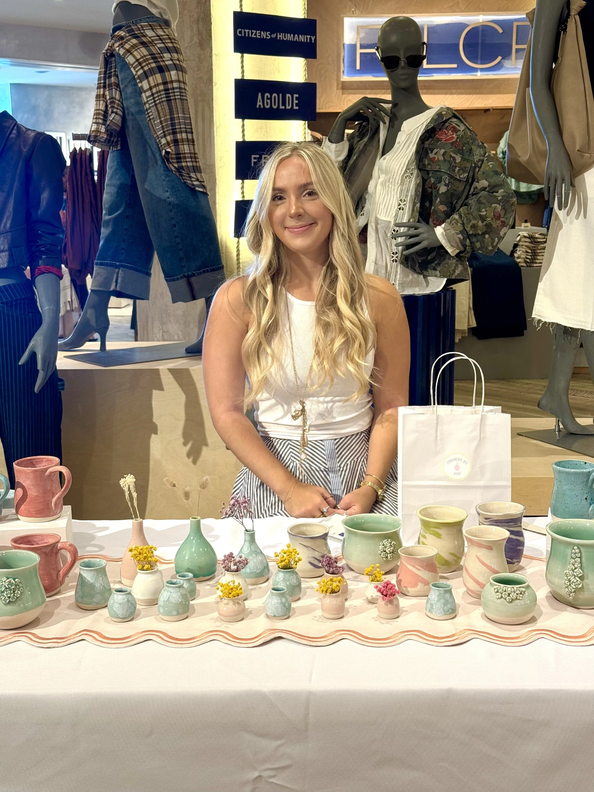 Maddie Poley is a ceramic artist and painter based outside of Philadelphia. She creates wheel thrown porcelain pottery, and enjoys bringing others joy through her work.